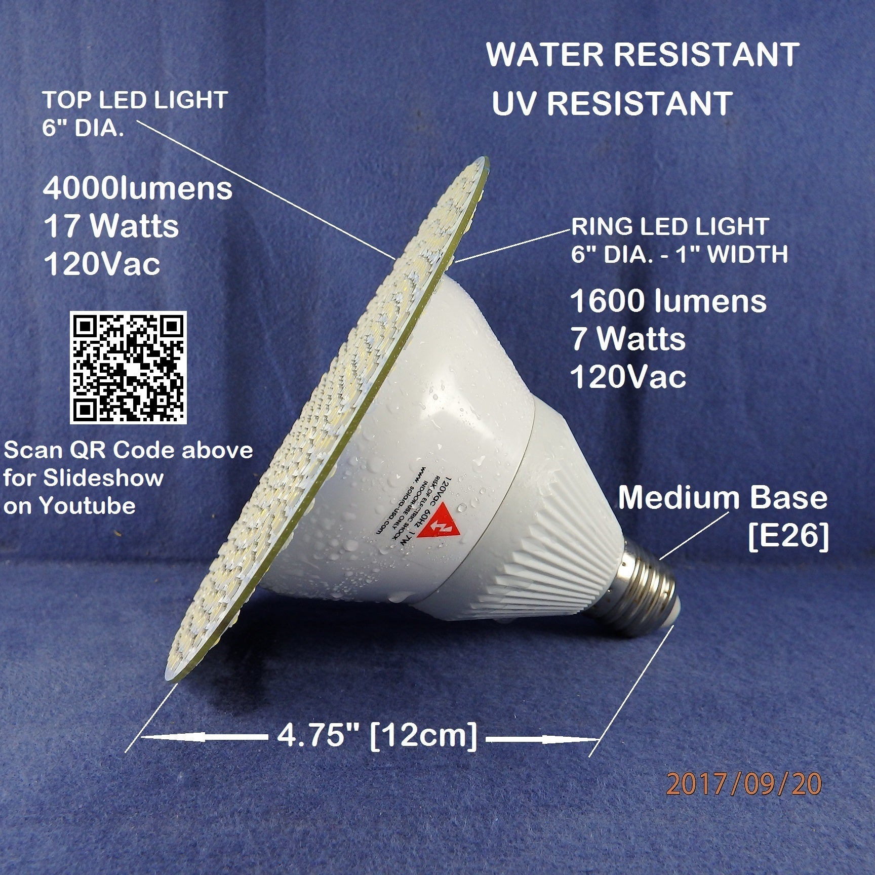 Size: 5.6" (14.2cm) Dia. x 4.75" (12cm) Height - E26 Base -- BR40 Format