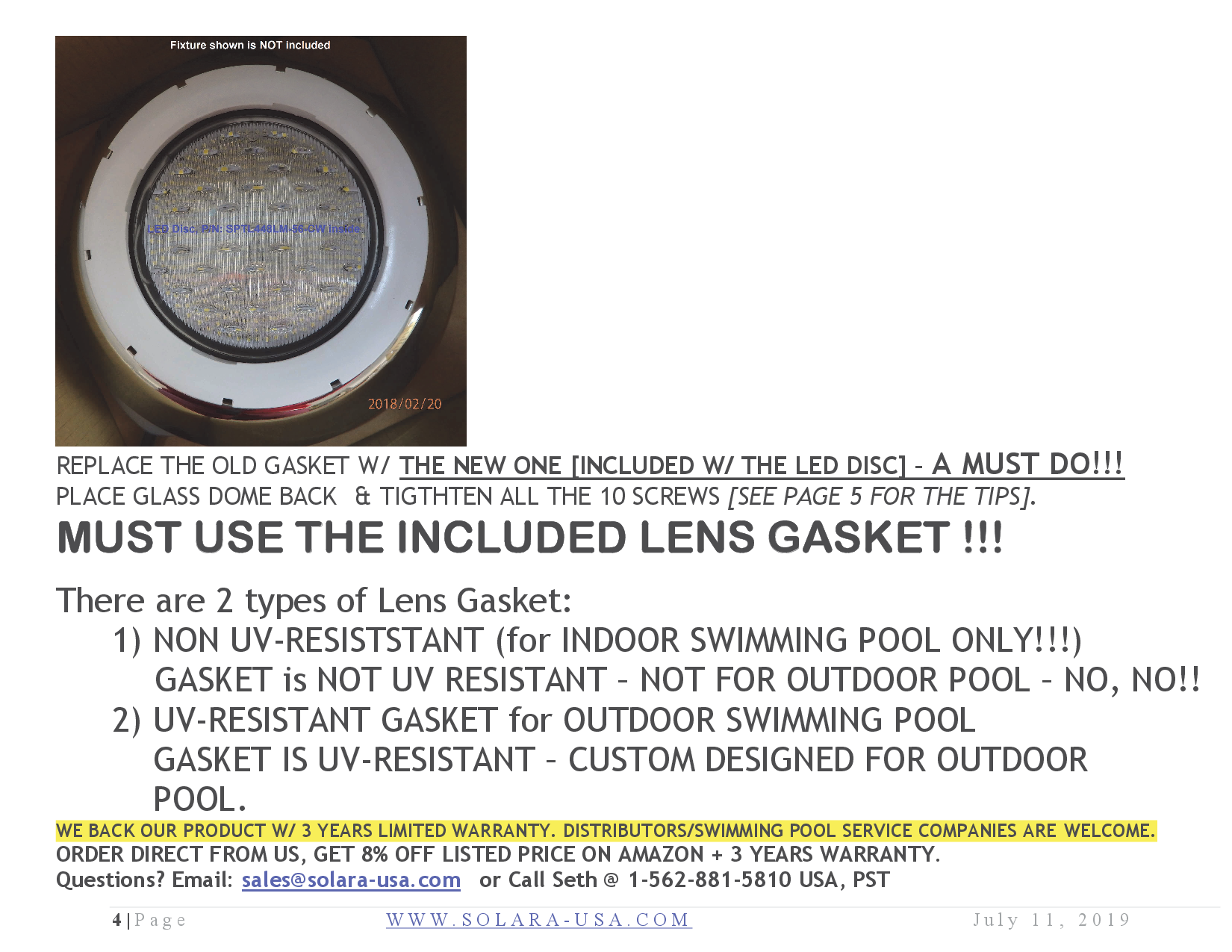 -MARINE GRADE [MUST BE INSTALLED INSIDE WATERPROOF FIXTURE WITH A NEW LENS GASKET & 10 NEW STAINLESS STEEL SCREWS -- INCLUDED IN THE KIT]!