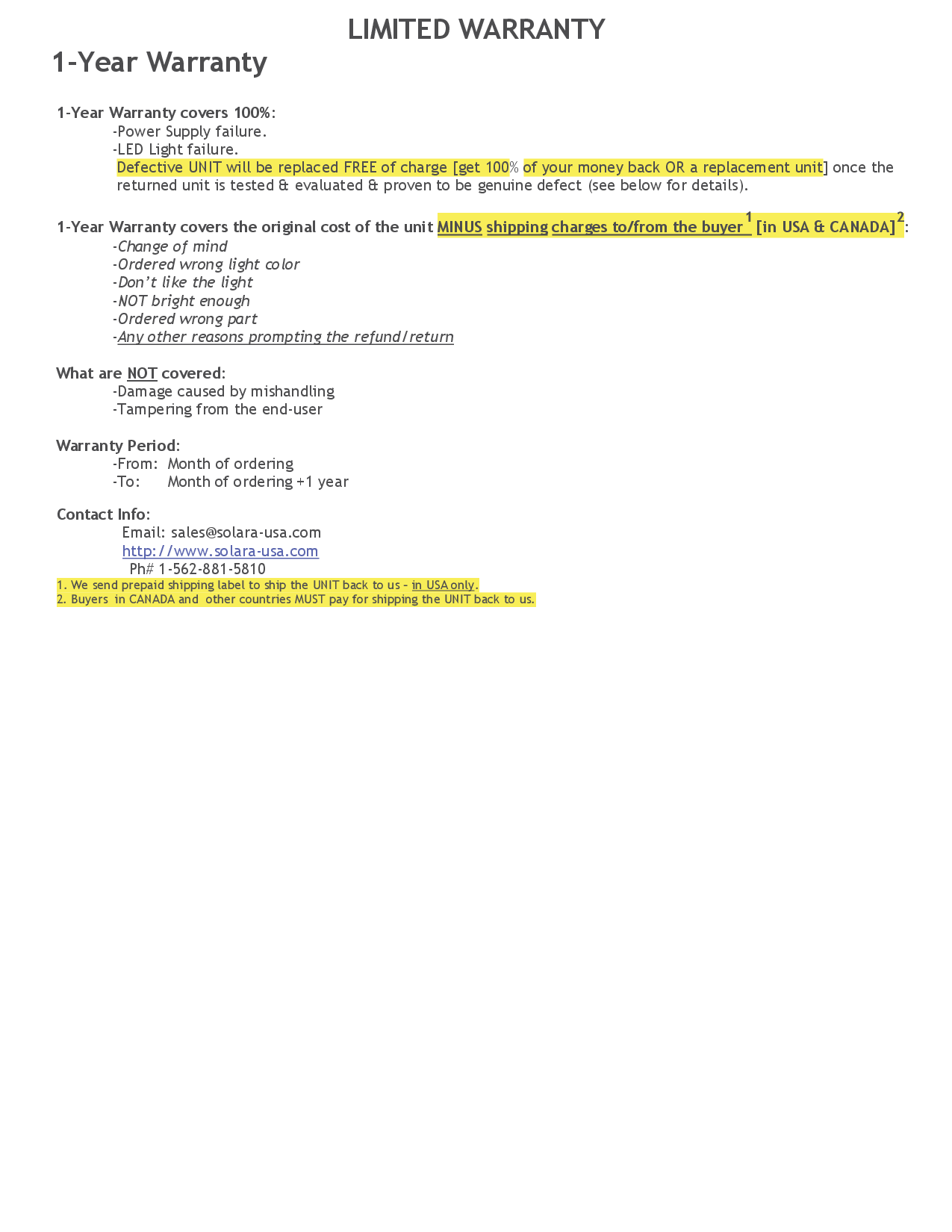 We, SOLARA-USA, Designed & Manufacture this Product with PRIDE & Track Record (on the market since 2014, sold on Amazon until NOW on Our Own Website).