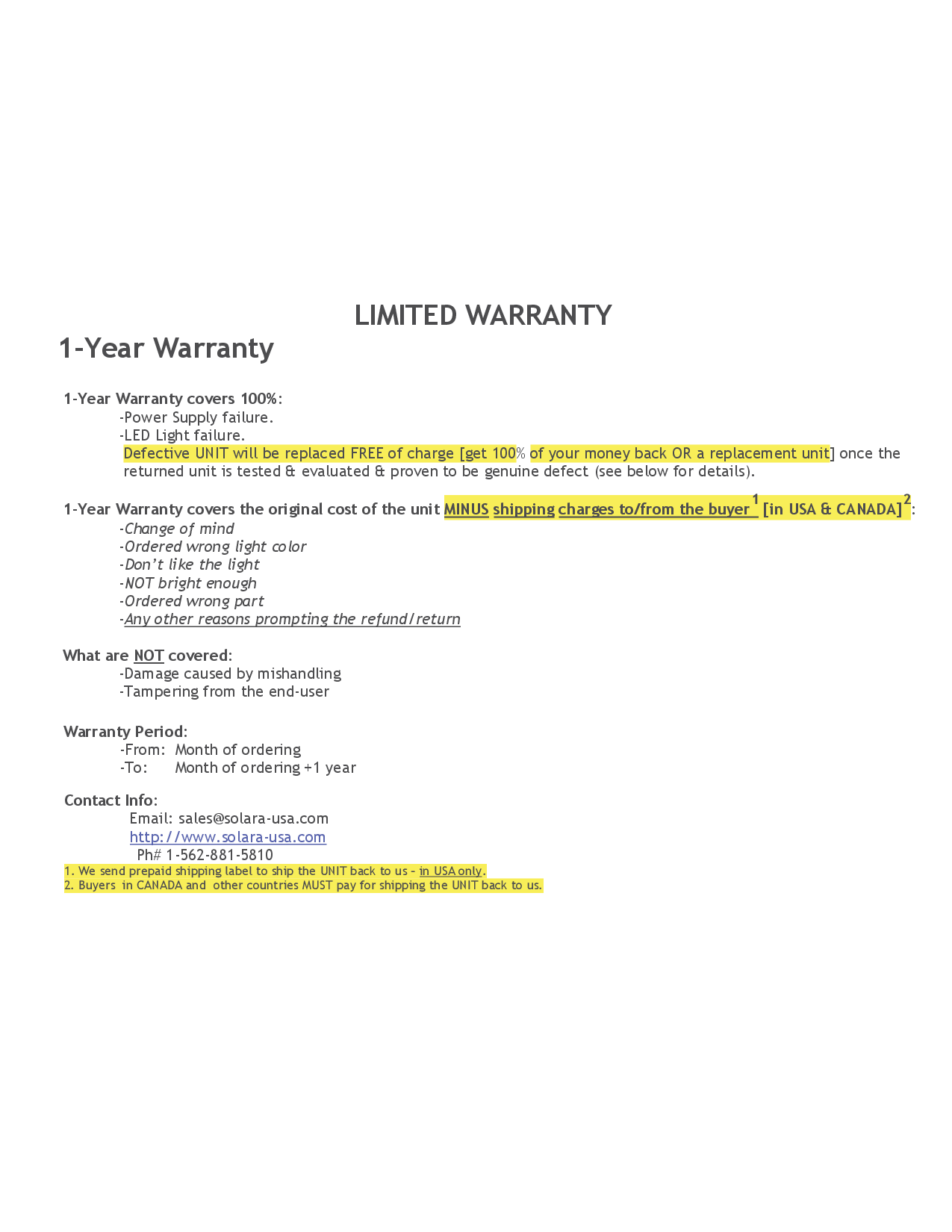 THIS PRODUCT IS A PROVEN-DESIGN PRODUCT TO KEEP ON SHINING SUPER BRIGHTLY FOR YOUR OPERATION. A SUCCESSFUL PRODUCT WITH TRACK RECORD sold on Amazon since 2014 (was selling on Amazon until NOW on Our Own Website: SOLARA-USA.COM).