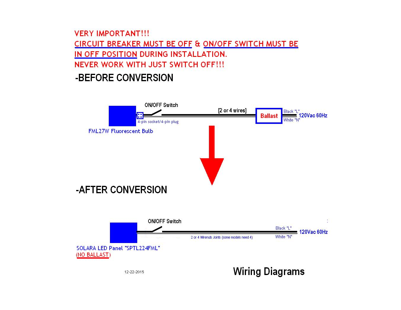 DIRECTLY Powered from 120Vac 60Hz -- NO BALLAST. NO HEAT. LASTS YEARS & YEARS of OPERATION. BRIGHT LIGHT -- BRIGHTER than Fluorescent Bulb.